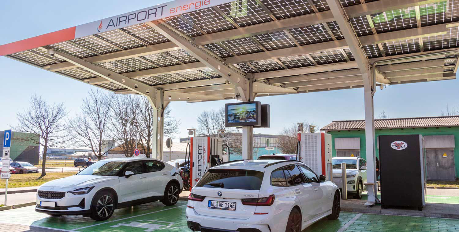 Am Ladepark des Allgäu Airport wurden zwei 49" Displays in einem Outdoor-Gehäuse installiert. Die Systeme sind als Back-to-Back Lösung aufgebaut und somit von beiden Seiten sichtbar.