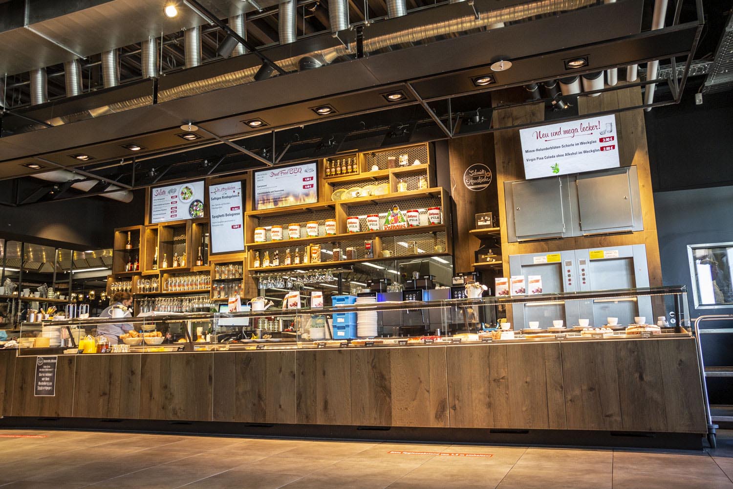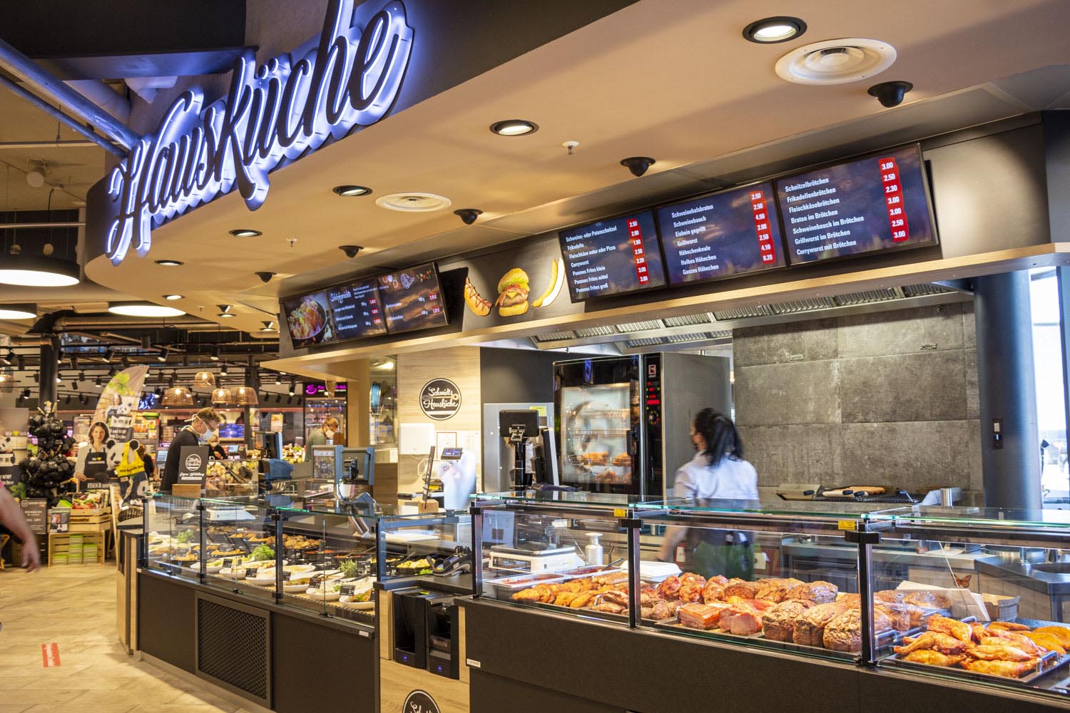 Auf rund 3.000 m² Verkaufsfläche vereint der XL-Markt klassische Lebensmittelbereiche mit Gastronomie, Hausküche und Sushi-Angeboten. Diese Vielfalt stellte hohe Anforderungen an die Kundenkommunikation.